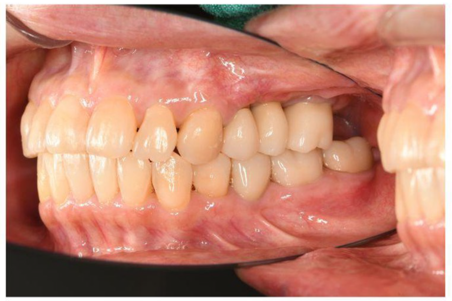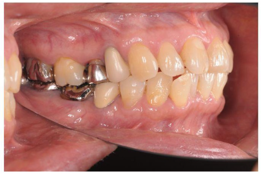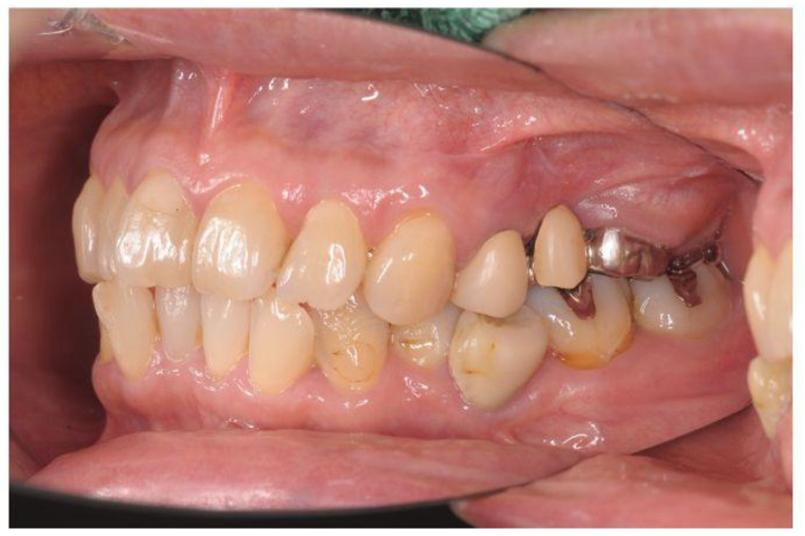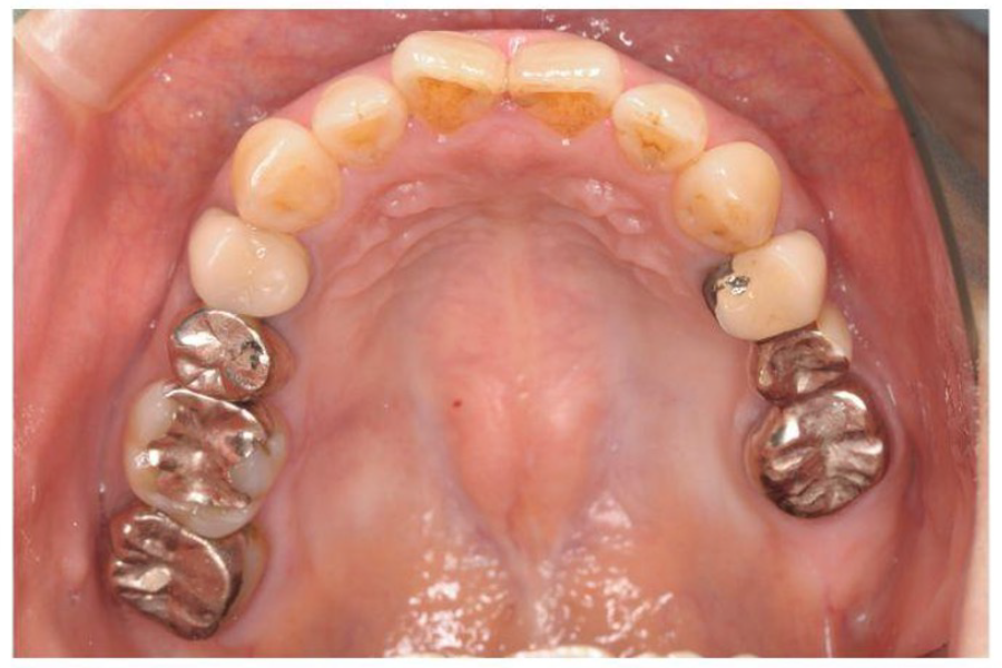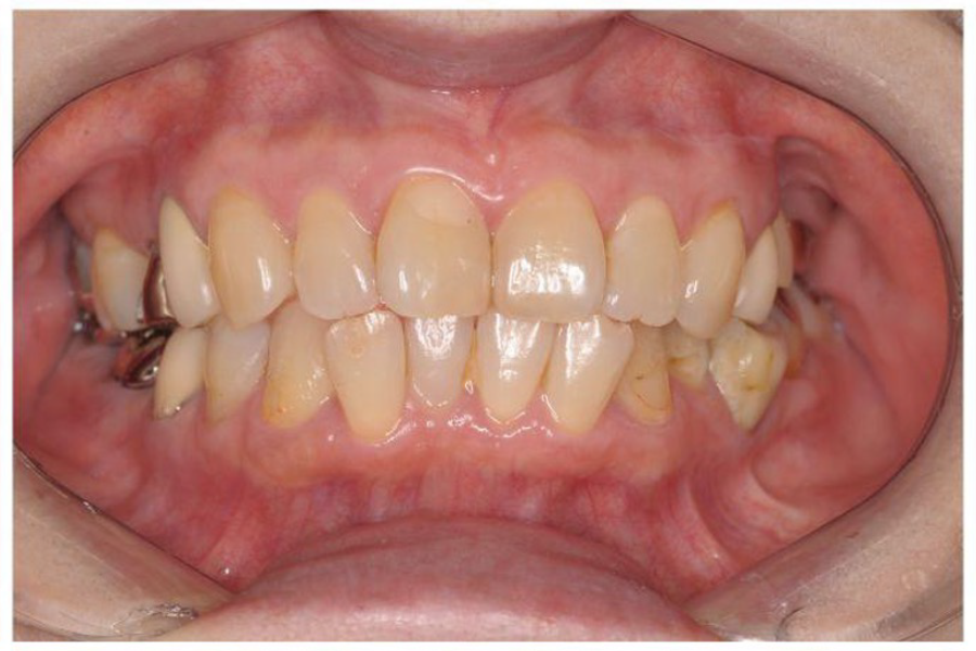 | 主訴 | 左上のブリッジが欠けた。 金属を白くしたい。歯並びも気になる。 |